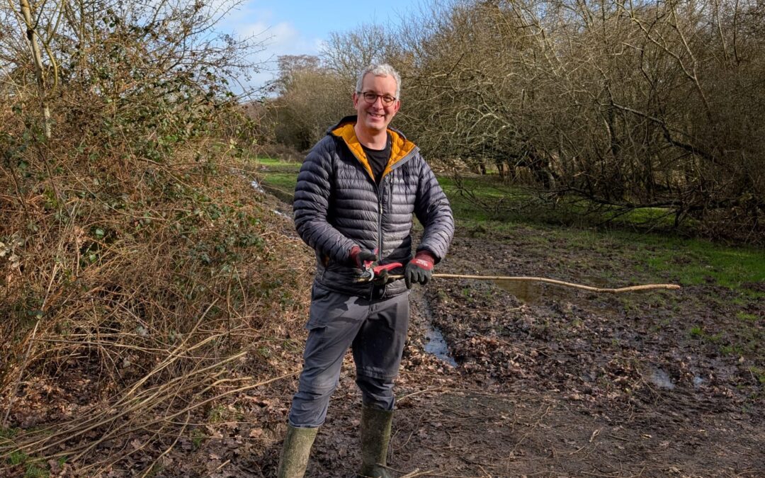 The volunteers at Knepp spent a long day coppicing and cutting hazel to stork-sized lengths before carrying it close to the area where the non-fliers build their ground nests. More than two trailer loads of sticks and branches were processed and delivered to the pen, thanks to the hard work of Knepp Ranger Steve, staff member Aaron and a small army of dedicated volunteers.